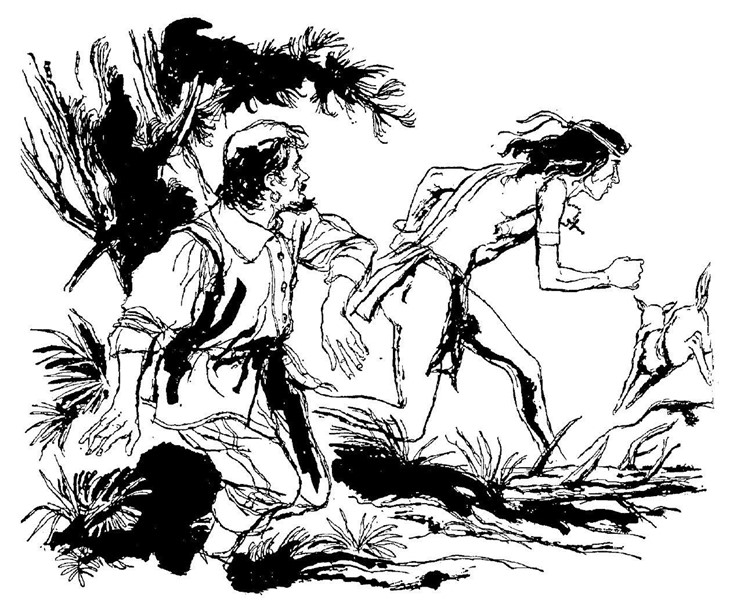 "I was wishing for a weapon of my own," muttered |14||picture: The soldier was almost knocked off his feet by a tall young Indian crashing after the dog| |15| the admiral, but he was careful to say it under his breath. Padre Kino was a brilliant mathematician, the only maker of maps in the New World and the official cartographer of his expedition. How could such a learned man be so impractical when it came to dealing with savages? the admiral wondered.